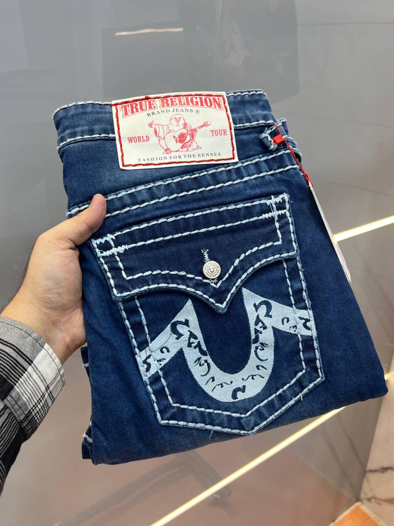 True Religio n Light Shade Premium Imported Stretchable Lycra Fabric Boot Cut Back Flap pocket Design Denim with Brand Box and Carry Bag 3549