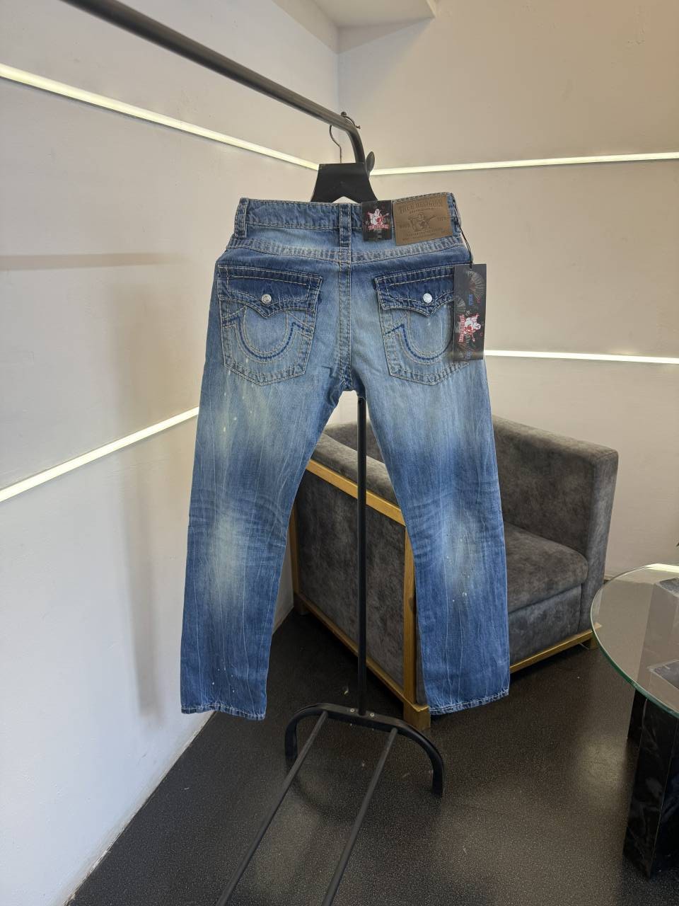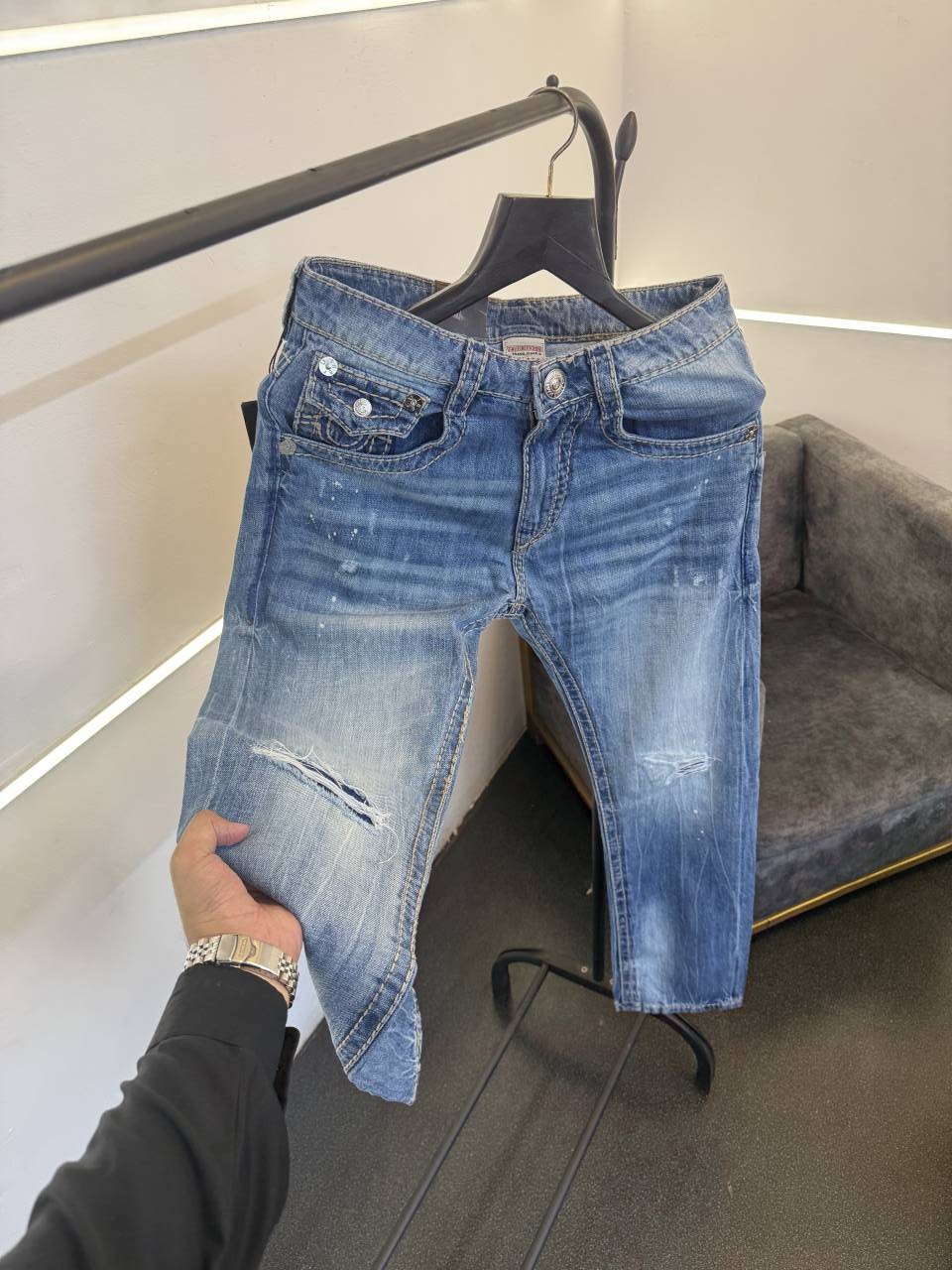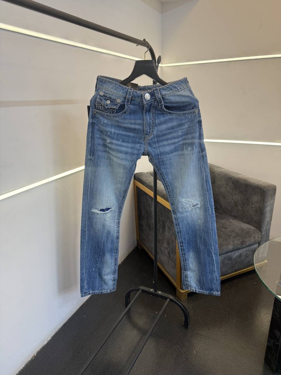 ? *True religion ripped straight fit hyperflex imported denim with brand buttons and with brand packing now in stock*?