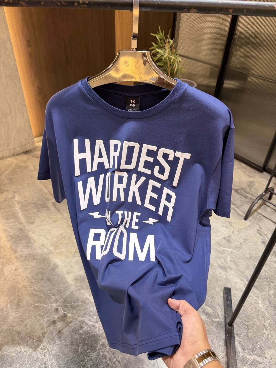 • UnderArmour Blue Imported Cotton Lycra Round neck Tshirt