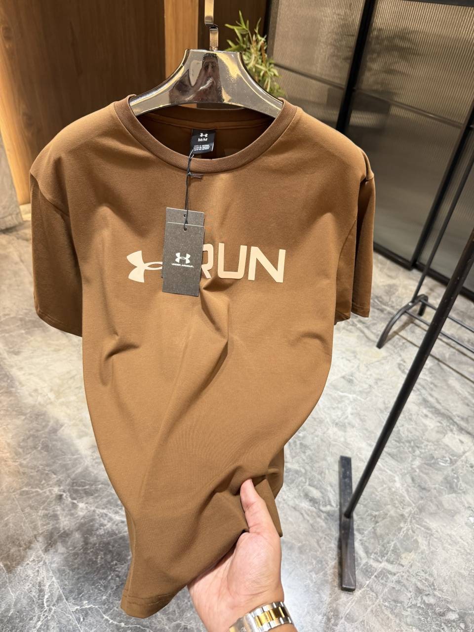 • UnderArmour Brown Imported cotton Lycra Round neck Tshirt