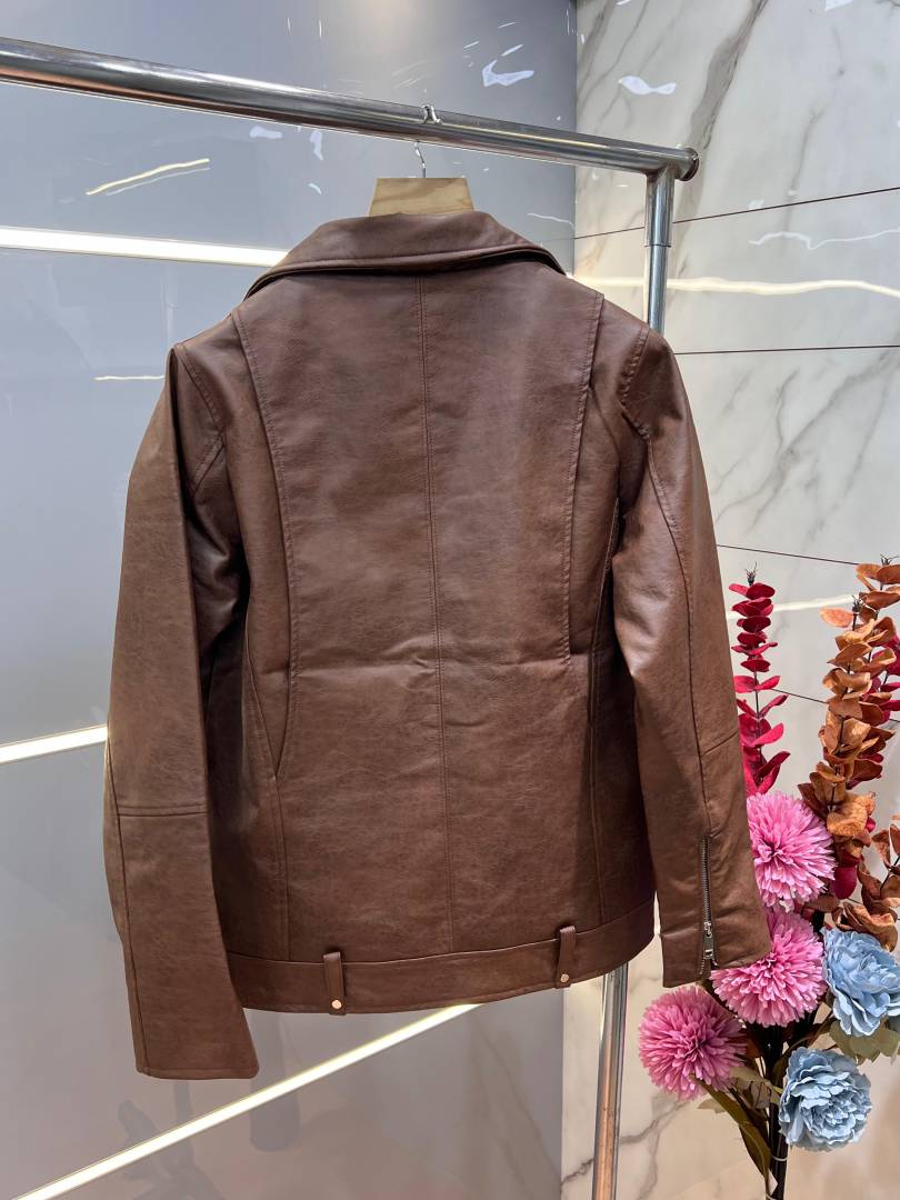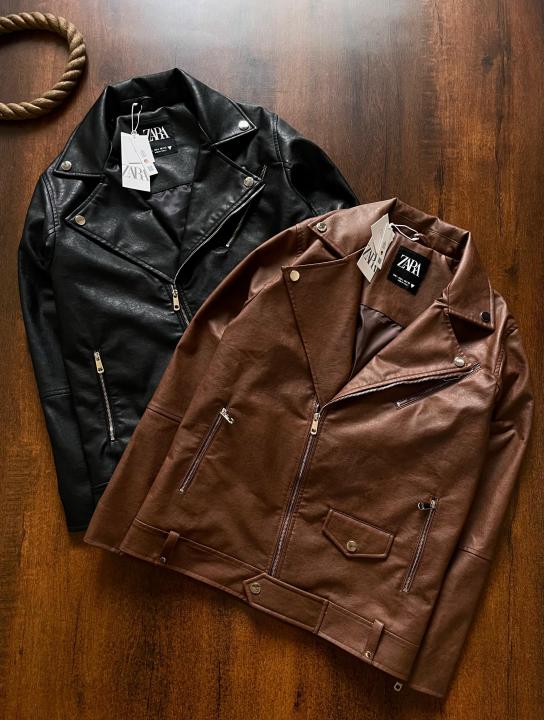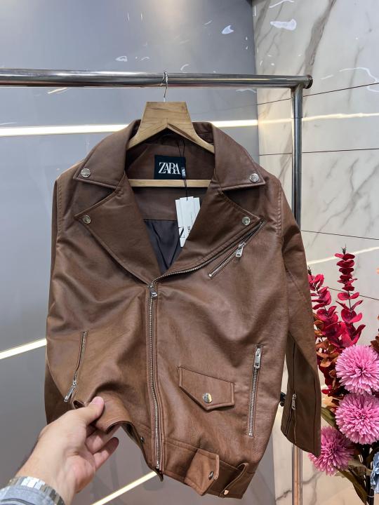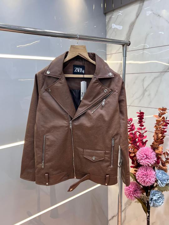 • Zar a Brown Imported Cross Zip Leather Jacket 3522